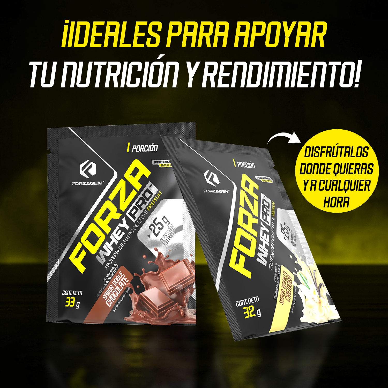 ✔ 2 Sobres (servicios) de Forzawhey-Pro – proteína premium con 25 g de whey por porción, textura cremosa y sabores irresistibles.