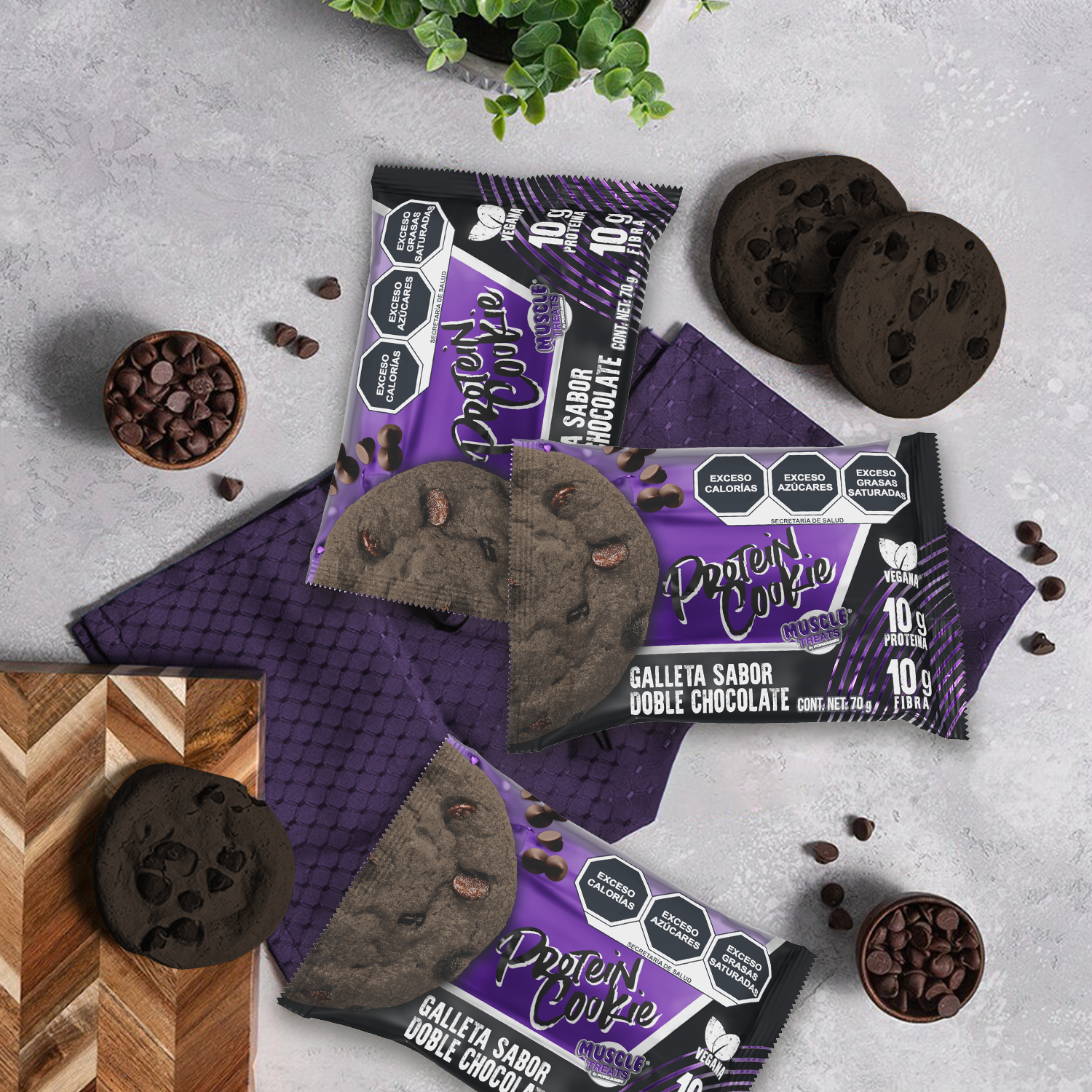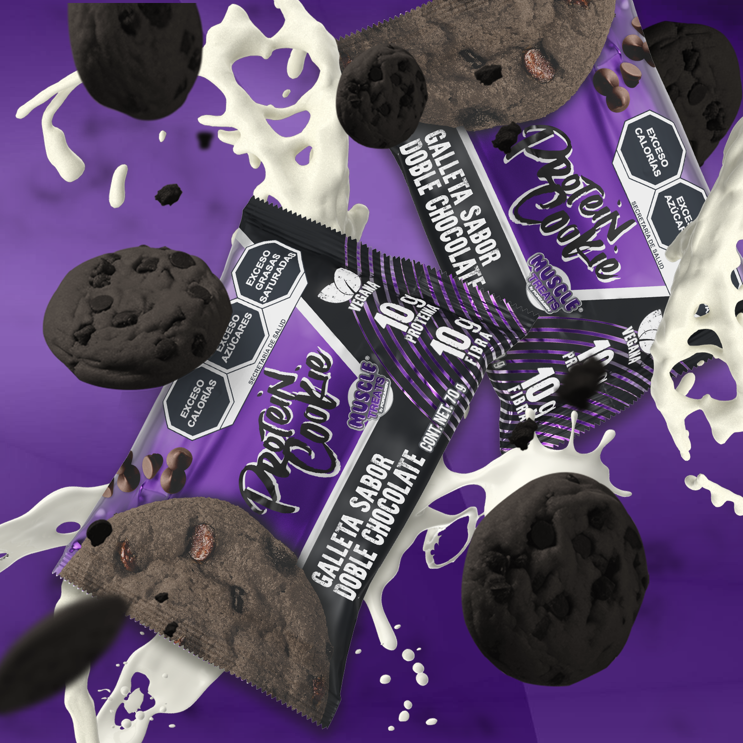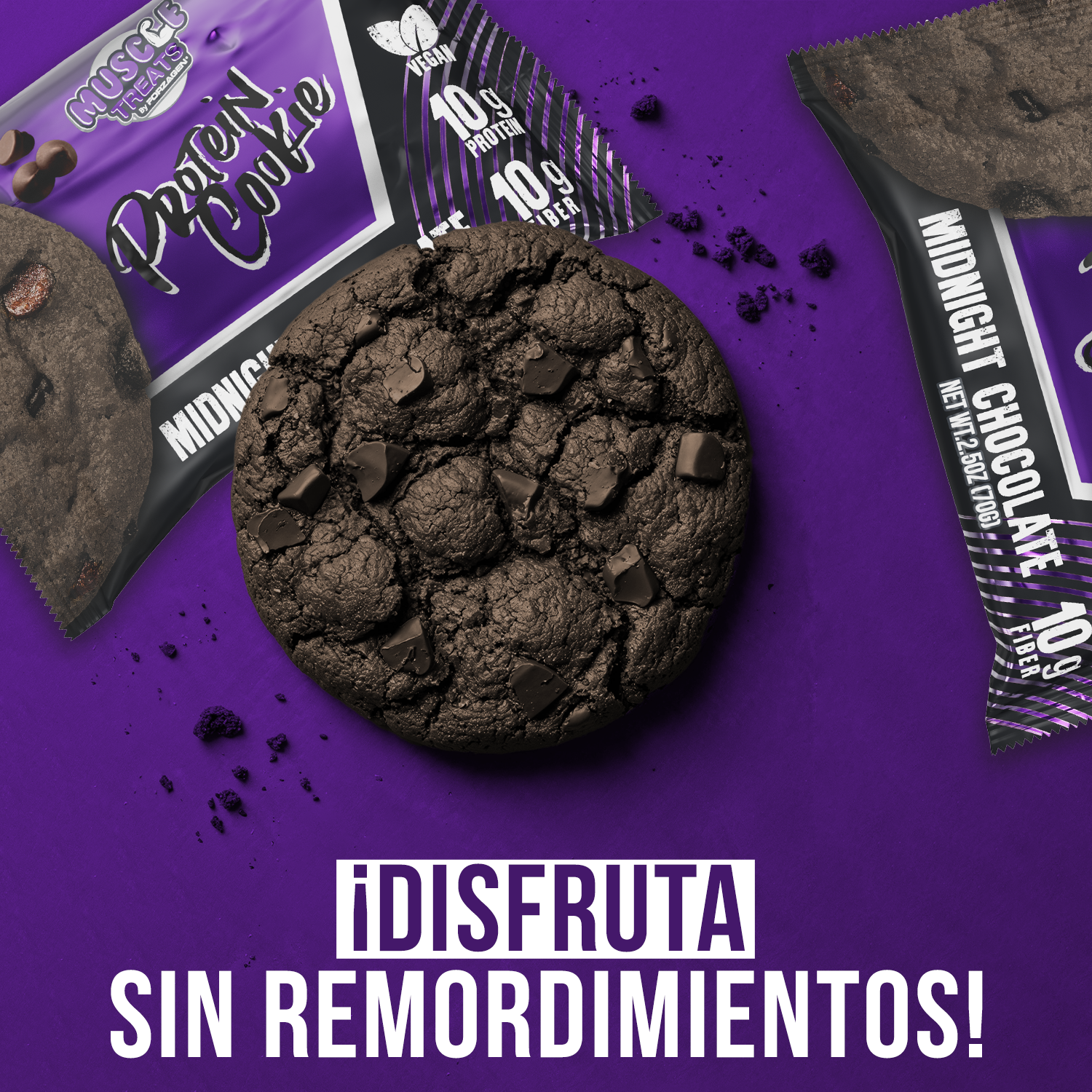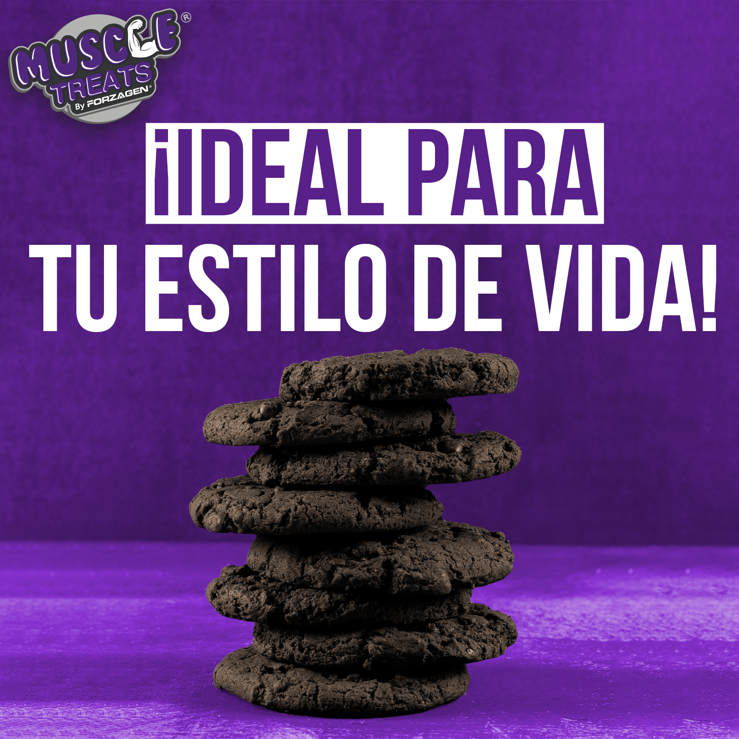 Muscle Treats by Forzagen | Galleta de Proteína Vegana | Doble Chocolate | 70 g por porcion | 10 g Proteína y 10 g Fibra| Snack Saludable | Pack (12 unidades)