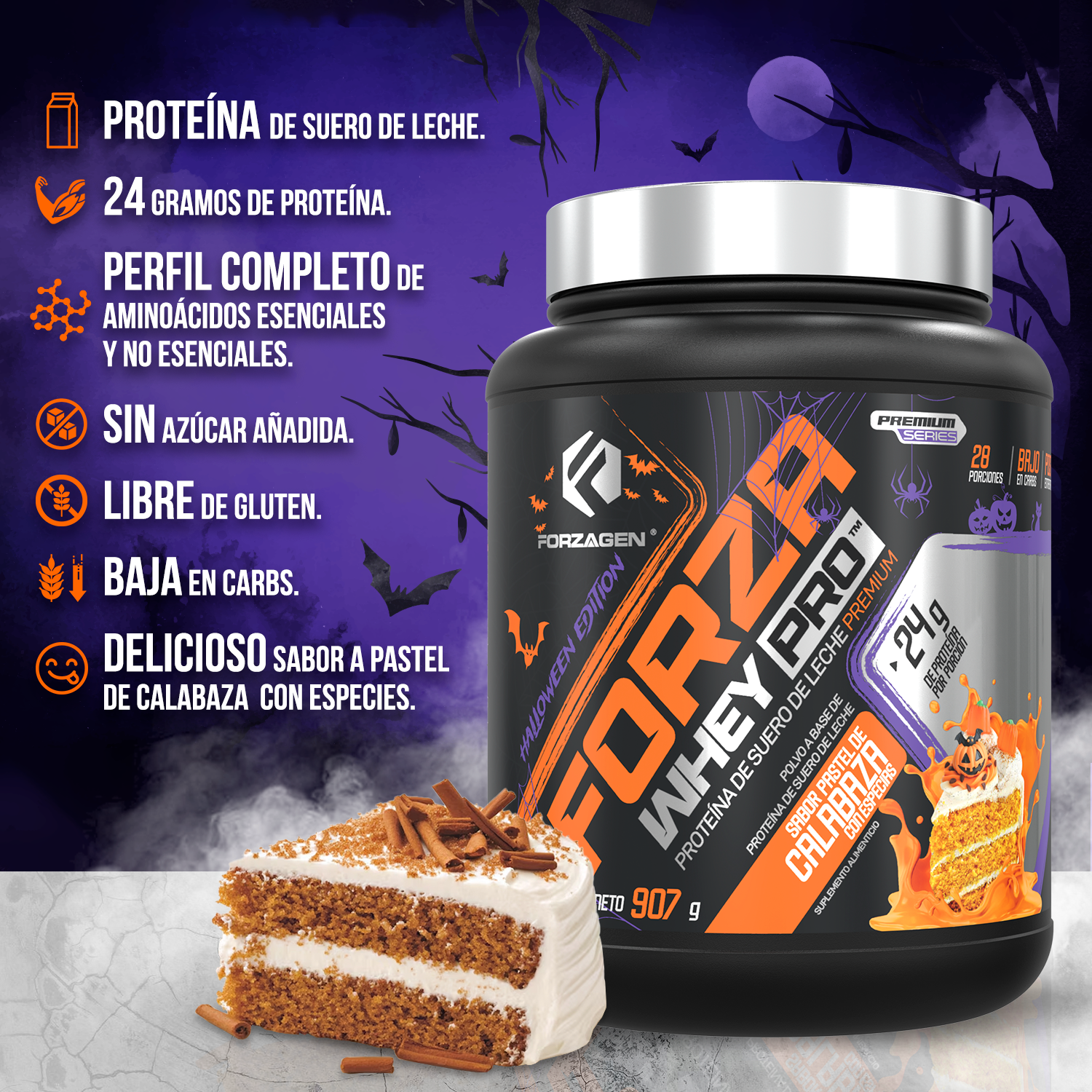 Proteína Forzawhey-Pro | 24 g de Proteína | 100% Whey Protein | 28 Servicios | Halloween Edition | Sabor Pastel de Calabaza Con Especias | 2lb (907 g)